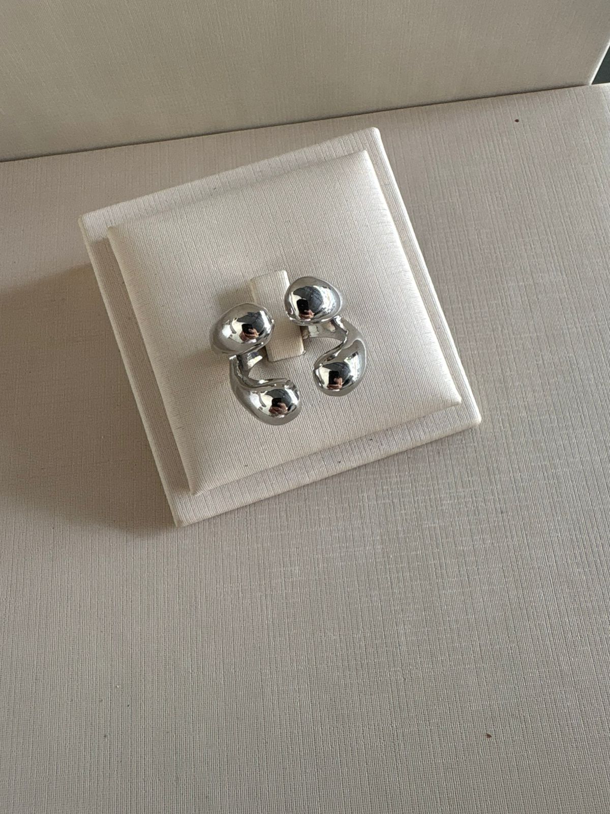 Com formas fluidas e volumosas, este anel celebra o equilíbrio entre arte e design contemporâneo.